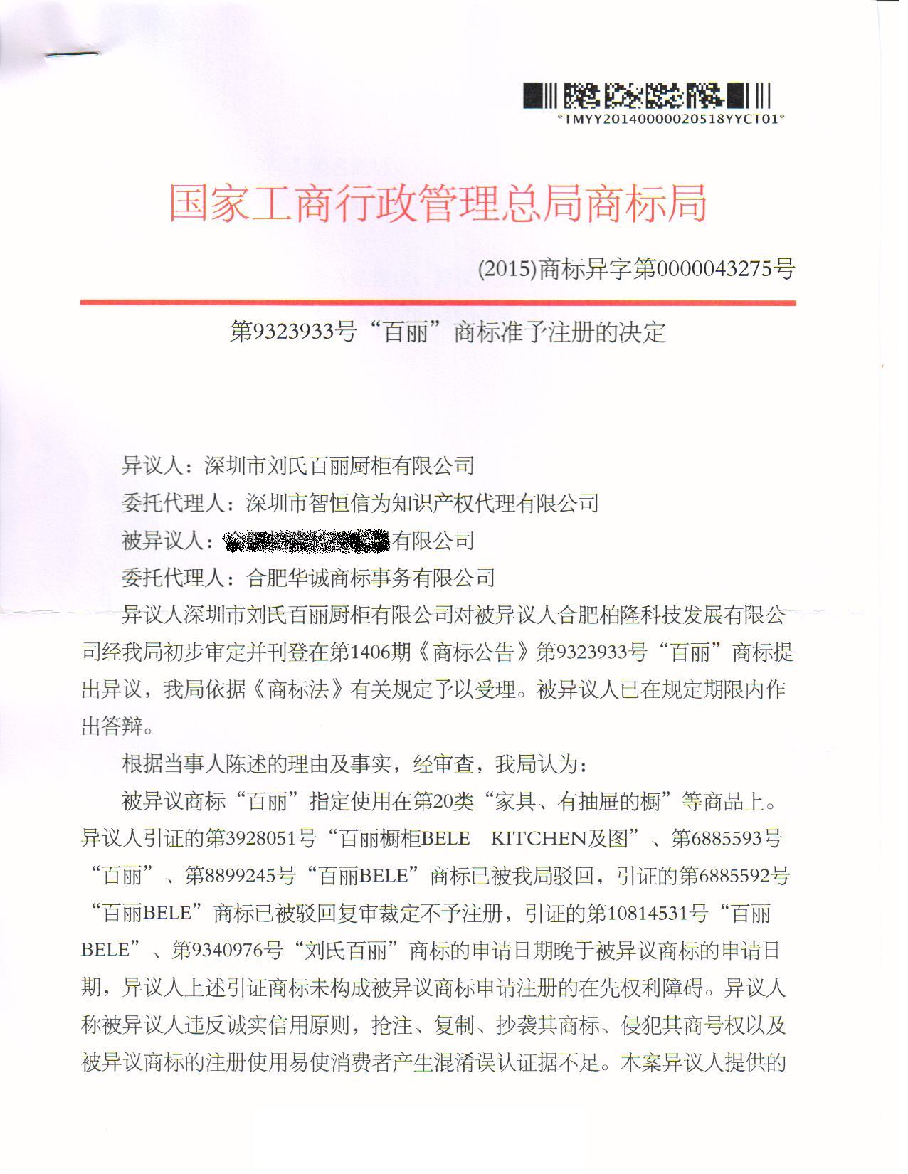 异议答辩成功裁定