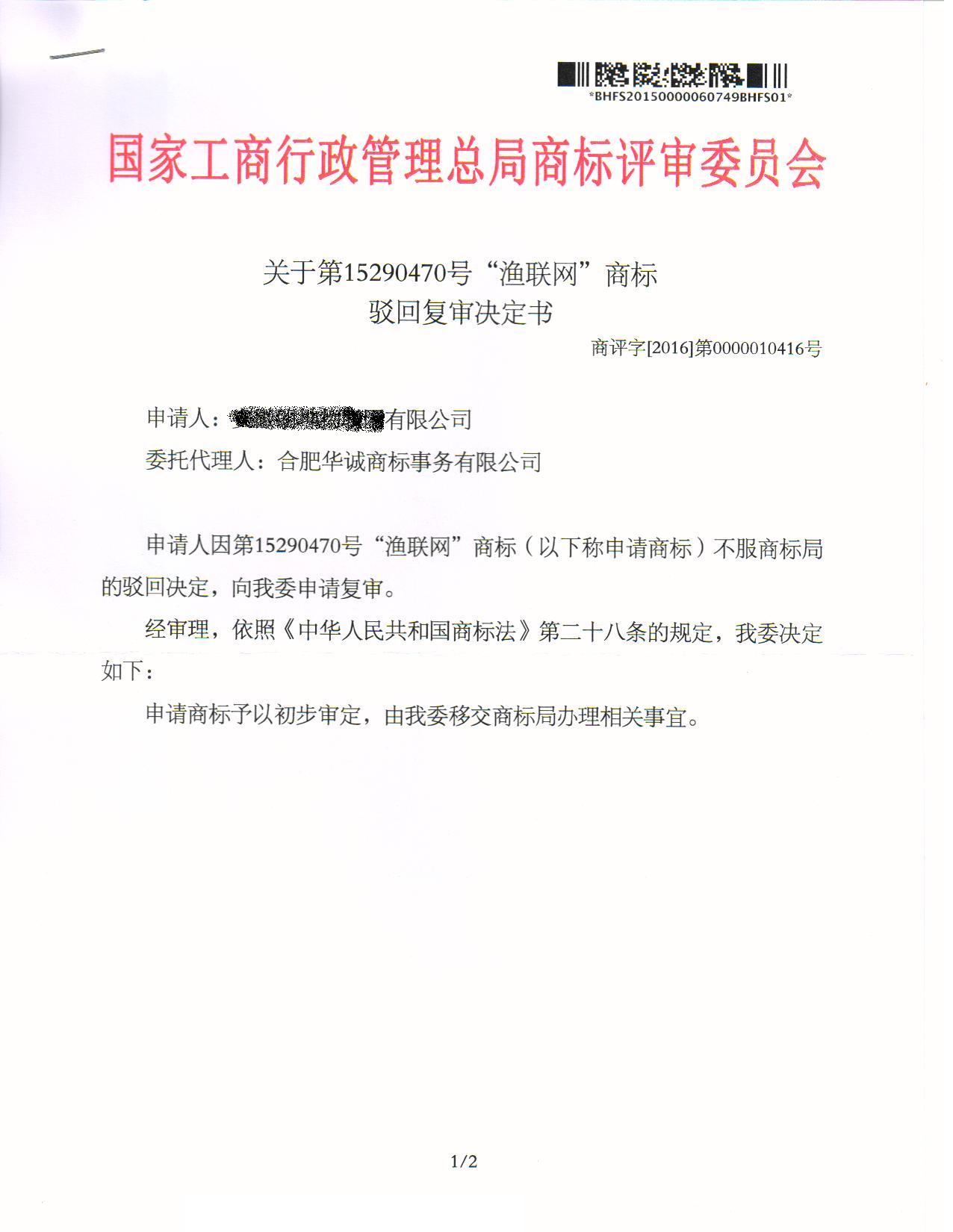 下一篇:"58同吃”商标准予注册的决定