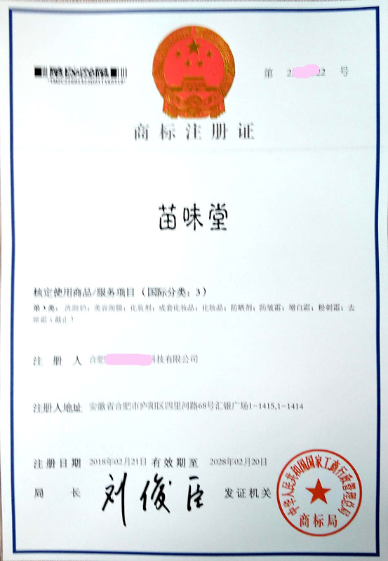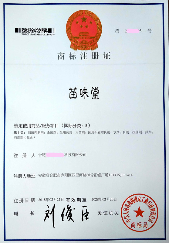 “苗味堂” 3类、5类商标注册证下达