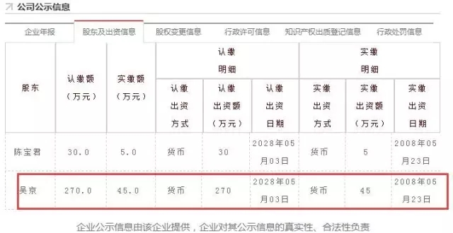吴京作为大股东的北京登峰国际文化传播有限公司出资信息