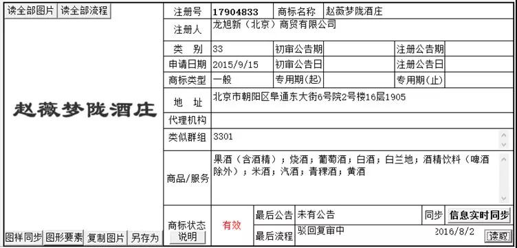 2015年9月15日,原告龙旭(北京)商贸有限公司向商标局申请注册纯文字商标“赵薇梦陇酒庄”,指定使用在第33类“葡萄酒”等商品上。